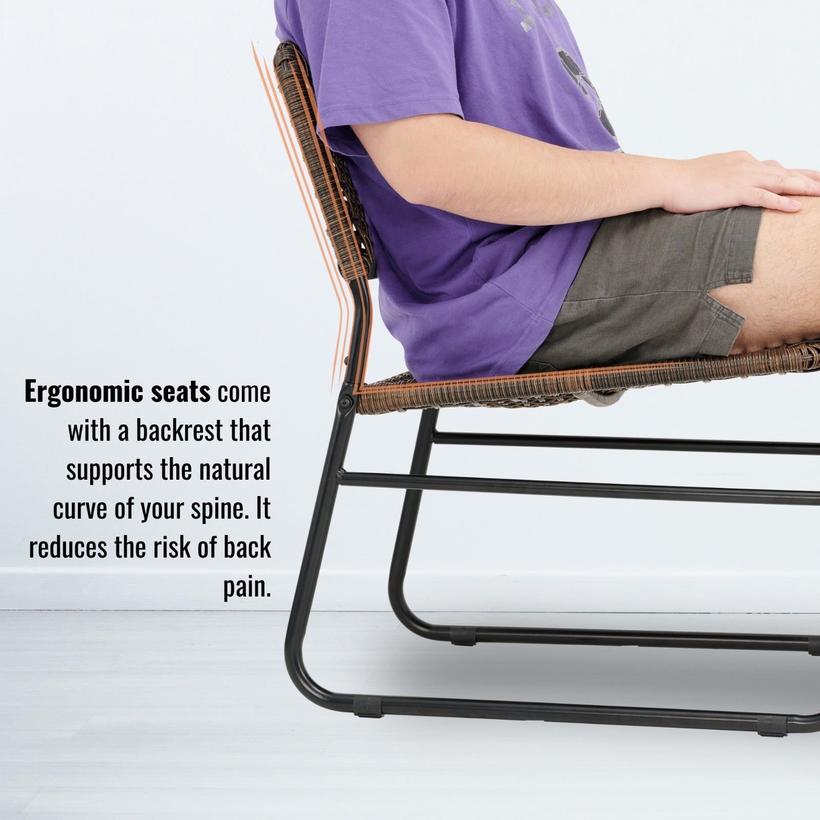 • ERGONOMIC CHAIRS: Ergonomic seats come with a backrest that supports the natural curve of your spine. It reduces the risk of back pain. Its ergonomic design ensures optimal comfort, while the sturdy plastic rattan construction guarantees long-lasting use and a high weight capacity of up to 363 lbs for single chairs.